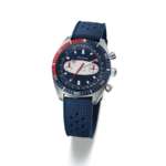 一方、スイス製自動巻きムーブメントを搭載した「98A251」(30万円/税別)は、世界限定350本、国内わずか10本限定という希少な特別モデル。アイボリーにネイビーとレッドを合わせた爽やかかつシックなトリコロールカラー、ツヤを抑えたマットな質感は、はしゃぎすぎない大人のリゾートシーンにぴったり。