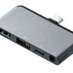 この「500-KC036CMH」、早い話がPCやタブレットなどに搭載するUSB Type-Cポートに直付けして、4つの機能に分配できる変換アダプタです。HDMI、USB-A、PD対応のUSB Type-C、それに3.5mmオーディオ端子を搭載しており、手持ちのデバイスとの入出力を可能にしてくれるというわけです。