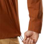 フードには、ドローコードアジャスターが付属し、フィット感の調節が可能。梅雨や、風の強い台風シーズンでも活躍しそうです。裾にもドローコードが装備され好みのフィット感に調整可能。