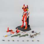 フィギュアの全長は肩パーツを含めて全長約25cm。素材にはABS、PVC、POM、亜鉛合金が使用されており、本体および付属パーツまで塗装済み。エヴァンゲリオン2号機のビビッドな赤が、threezeroの得意とする緻密な塗装で表現されています。