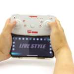 (3)手持ちのスマートフォンやタブレットを、「Type-1000HD」に付属する2.4GHz、モード2採用送信機のアタッチメントに装着し、空中動画をFPV(一人称視点)でライブ映像を楽しみながら操縦