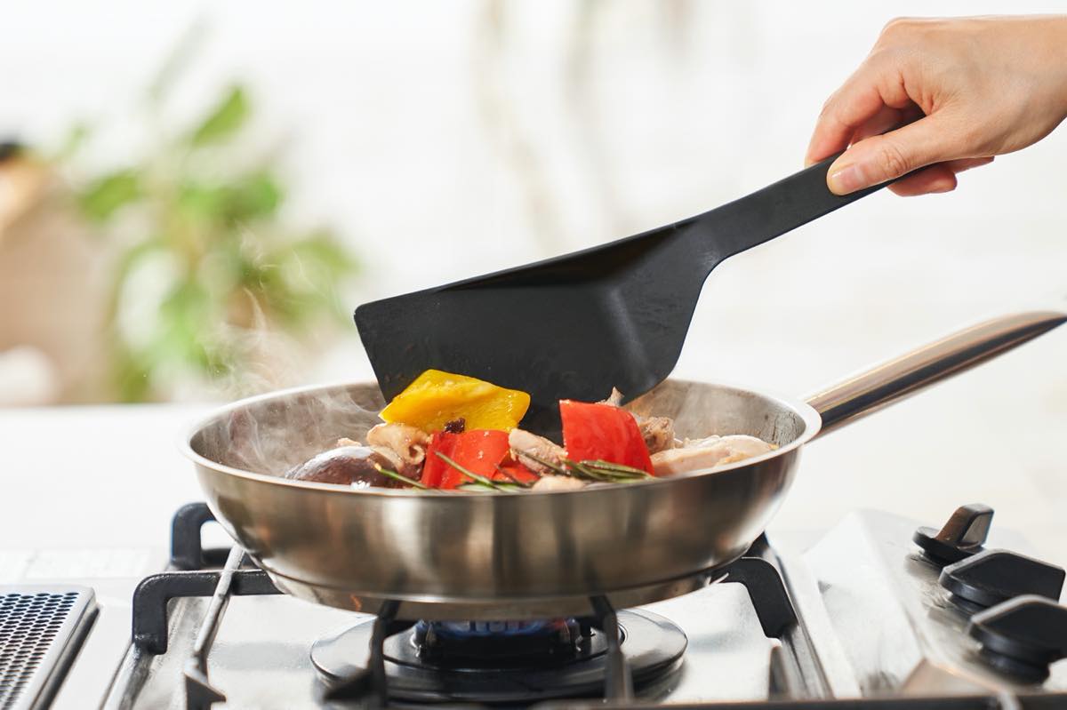 そもそも “スパチュラ” とは、混ぜる・炒める・すくう・裏ごしするなどを1本でこなせるヘラ状の調理器具です。シリコン製のものをよく見かけますよね。