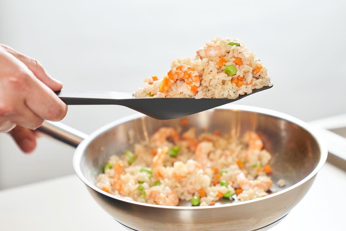 使いこなせるようになると “混ぜて、ほぐして、フライ返しに使えて、食材をすくって盛り付けられる…”と1本でいろいろ活用できるのがポイントです。