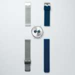 スタンダードなシルバーメッシュストラップに加え、カジュアルで使い勝手のいいネイビーのシリコンラバーストラップも付属。工具を使わずに簡単に取り替えられるので、毎日のコーディネートと合わせてスタイリングを楽しめます。