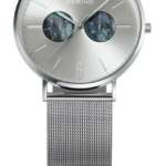 スモールセコンドに深いブルーのシェルを施し、見る角度によって表情を変える美しいきらめきでオーロラを表現。ベースカラーのシンプルなシルバーが、よりそのきらめきを引き立てています。