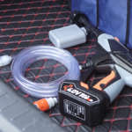 「LUTIAN」の特徴は、重さ2.4kgと女性でも使いやすい軽量化・小型化を実現しながら、最大吐出圧力3.5MPaと、ハンディータイプの高圧洗浄機としては非常に強力な噴射力を誇るところ。段ボールを打ち抜けるほどの強さを有し、車の洗浄や外壁、窓や網戸の洗浄など、頑固な汚れもしっかりと落とします。