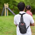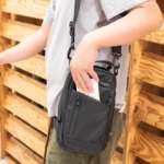 カラダの前の方にかける「ボディバッグスタイル」は、満員電車など人ごみの中で大切なバックを守りたいときのスタイル。