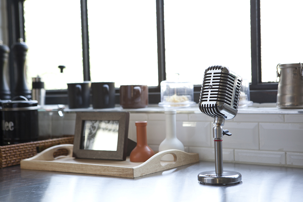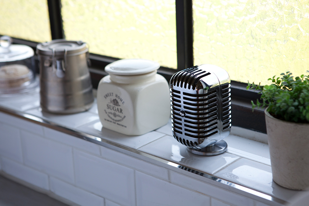 レトロな味わいのスピーカーはインテリアとしても絵になる存在。カラーはクロム、ブラック、マットクロム、ゴールドの4色。
