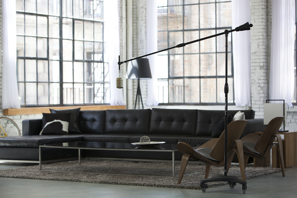 標準装備はトラベルスタンドとデスクスタンドだが、 スピーカー本体とスタンドを繋ぐ接続部分にはユニバーサルマウント(ISO1222規格)を採用しているので、カメラ用三脚やトライポッド、マイクスタンドなどを取り付けることができる。