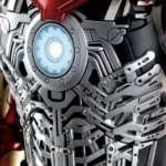 精巧に再現した胸部の「アーク・リアクター」はLEDライトで点灯。また、アイアンマンの主要な武器のひとつ「リパルサー・レイ」もLEDライトで再現するなど、光のギミックは全部で6カ所。