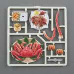 「フィギュアのごはん」シリーズは、1/12スケールで揃えた彩色済のリアルなプラモデルです。これまで、カツ丼や親子丼などの丼物や居酒屋焼き物メニュー、カレーセットなど、さまざまなリアルな食事が登場してきましたが、今回はなぜか“カニづくし”!