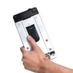 ハンドル部には磁石パーツが設置してあり、スマホに付属のプレートを装着することでハンドル部への固定が可能。会計の準備時やハンズフリーでの通話、写真撮影の際に便利となりそう。