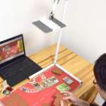 高さ約70cmのポールの先にあるクネクネと曲がるアームにスマホやタブレットを設置し、カメラを下に向けてることで、広い範囲を撮影できます。画角が卓上の広範囲になるので、カードゲームの手牌を写すのに便利!