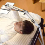 背が高く、しっかりと固定できるスタンドだから、ソファーのそばに置いて動画を見たり、ベッドの脇に置いて寝転びながらスマホやタブレットを使ったりにも便利。また、ポールを1本外して高さを変えれば、机の上などで使うことも可能です。