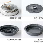 特徴は、何といってもその多機能さ。「GRISTA」は、ドーナツ型水受け鍋とスチームプレート、反射板ガラス蓋がセットになっており、「GRISTA+」は追加でボイル用鍋が加わります。これらのパーツを組み合わせることにより、焼く・煮る・蒸すの各調理が可能になります。