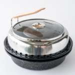 セットはすべて合わせても総重量は約2.5kgと軽量。鍋とガラス蓋は直径が28cm(内径26cm)で、高さは水受け鍋との組み合わせ時で約21cm、ボイル用鍋との組み合わせ時は約20cm。すべてのパーツを重ねて収納できるので、アウトドアへの持ち運びはもちろんのこと家での収納時にもスペースを取りません。