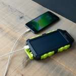 「Solar Power Bank 10000mAh」(3580円)は、外寸が約165×86×厚さ22mm、重さは約280g。見た目にがっしりとしている仕様は、アウトドアでも安心して携帯できる設計によるもの。