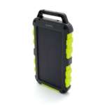 USBポートに保護カバーを被せた際の防塵・防水性能はIP54と高くなっています。本体前面には、高輝度のLEDライトを搭載。明るさ1W・約30時間の連続点灯が可能なので、テント等に吊り下げて照明に用いたり、夜間暗所を散策する際の懐中電灯代わりに使うことができます。さらに背面側には、ソーラーパネルを搭載しており、バッテリー本体の電力補充が可能です。