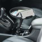 サンワダイレクトから、財布やスマホ、駐車券などをチョイ置きするのに便利な車載テーブル「200-CAR075」(実勢価格:3480円前後)がリリースされました。車のドリンクホルダーに差し込むだけの簡単設置で面倒な手順は一切なく、対応するドリンクホルダーが高さ4cm以上、直径6.8~9cmであれば問題なく設置できます。