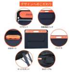 デザインで大きく変わったのは三つ折りから、ふたつ折りになっている点。取っ手がパネルと一体化しており、パタっと折り畳むことですぐに持ち運ぶことができます。