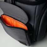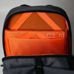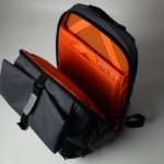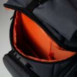 本体リュックには16インチのノートPCとタブレットそれぞれの専用収納スペースが設けられており、同時に持ち運ぶことが可能。それぞれの収納部には、すべり止め防止用のバンドが付いているほか、ノートPC収納部にはクッション性が高く衝撃を吸収するボア素材が使用されています。