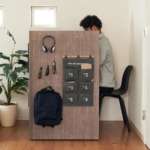 パーテーションは有孔ボードなので、BOXやフックを取り付けておけば、収納にも便利。ほかにも時計やフィギュア、インテリア小物を飾れば、個室感がさらに楽しめそう。