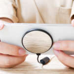 吸盤でくっつくことのメリットは、充電中もスマホの操作ができて、かつスマホの端子をふさがないこと。コントローラー部と送電ユニット部を離れているため、スマホに貼り付けた状態で操作しても、ケーブルは邪魔になりません。