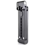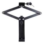 収納時のサイズはW7×H27×D6.4cmで、かさ張ることなくすっきりとまとまります。ロックする際は、折り畳まれたアームを展開し、自転車の車輪に噛ませた状態でアームの先端を結合。付属のキーで閉じればロックは完了です。