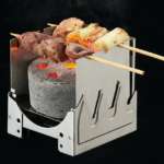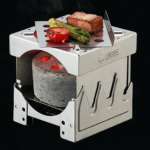 本体サイズは、幅8.6×奥行き14.5×高さ8.9cm。文庫本1冊分のスペースがあれば設置可能な手のひらサイズのミニグリルです。約230gの軽さながらゴトクやロストル、焼き網など一式がセットされ、これひとつでいつでもどこでもキャンプ気分が味わえるのです。