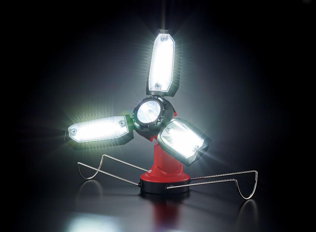 コジットの「バッ!と広がる多角度LEDランタン」(1800円/税別)は、まさにそんなアイデアグッズ。3枚の羽を開閉してさまざまな形に変形させ、8つの点灯モードを組み合わせることで、ランタン、懐中電灯、ベッドサイドランプほか、工夫次第で幅広い用途に使えるんです。