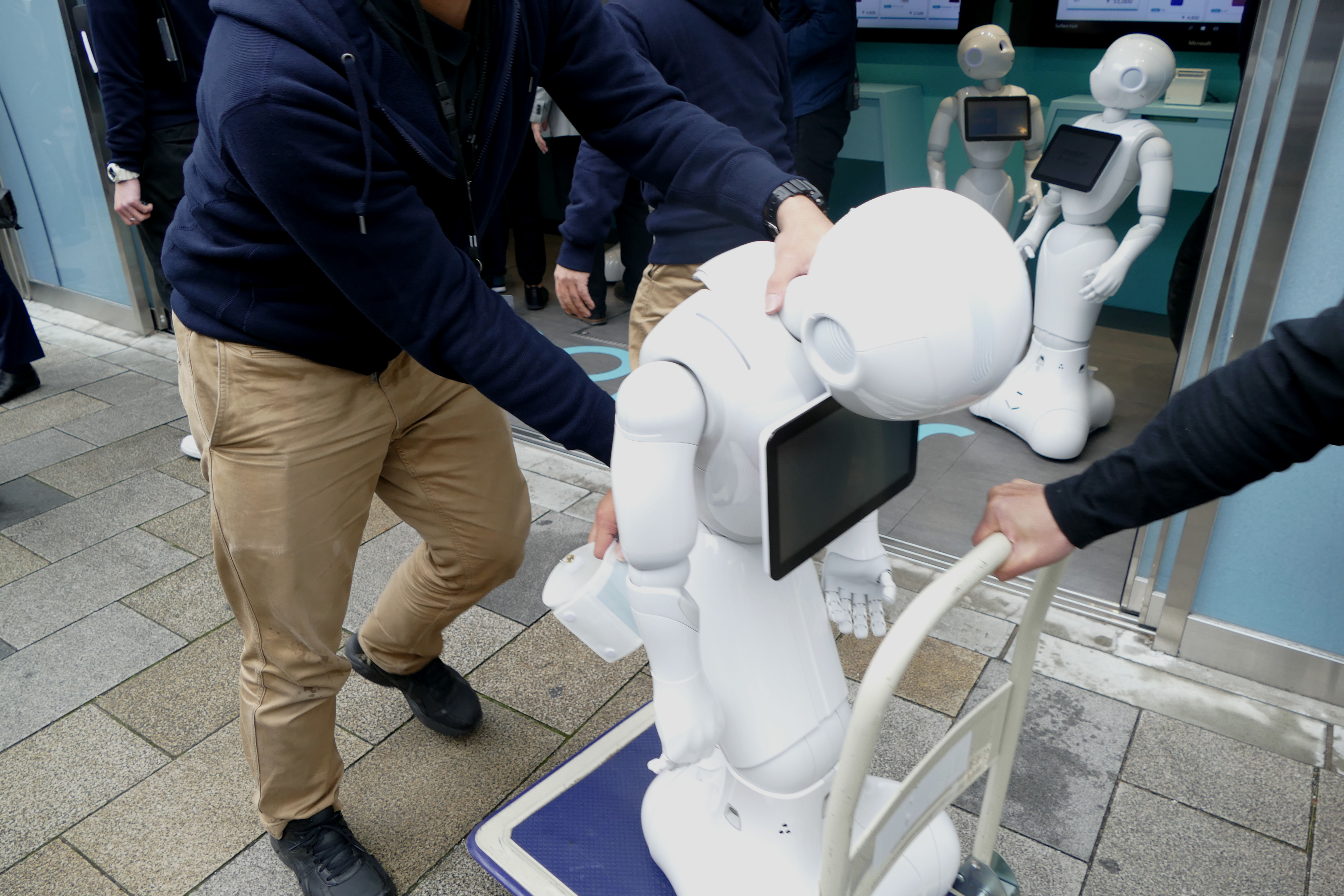 あまり関係ありませんが、台車で運ばれるPepperくんを激写。