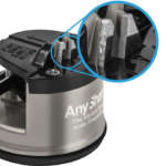 使い方は簡単で、「AnySharp」に固定された研ぎ石に包丁をあて、軽くサッと引くだけ。これだけで切れ味が簡単に復活する秘密は、20度という角度にあります。この角度は切れ味のため計算を重ねてたどり着いた角度なのです。