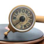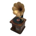 ホンモノの「ニッポノホン35号」は、本体部分だけでも幅約39×奥行き39cm、ラッパの直径は50cmほどもある大きなものでしたが、この「インテリア蓄音器」は幅145×奥行き210mm、高さ315mmのミニチュアサイズ。