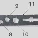 ▲(8)「KW4六角ナット」(9)「KW5六角ナット」(10)「KW8六角ナット」(11)「定規(cm)」 (12)「KW7またはM5蝶ナットオープナー」(13)「ホッチキスリムーバー」(14)「ワイヤーストリッパー」