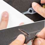 本革を使用したレザー部分の持ち手には5つのツールが収納されており、ツール1は「うろこ取り/ミニのこぎり」「ねじ回し」「栓抜き」の3用途。ツール2には「裁縫用千枚通し/レターカッター/梱包用カッター」と「裁縫用糸通し穴」の2用途。ツール3は「ナイフ」。