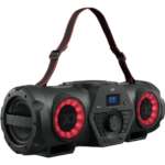 「RV-NB250BT」は、トータル60Wのハイパワーアンプを内蔵したオールインワンポータブルシステム。ものすごく端的に言えば、CDやラジオなど、さまざまな音楽コンテンツを迫力の重低音とともに楽しめるウーハー内蔵のサウンドシステムです。ですが、真っ先に目を奪われるのはやはりこのドラム型のイカついルックスではないでしょうか。