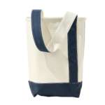 「ボート・アンド・トート・バッグ」から派生して生まれたこのバッグは、高さ約36×底面幅24×奥行き14cmという筒型トートの前面と背面に1本のハンドルを通してワンショルダーに仕立てられており、スタイリッシュで個性的な印象です。