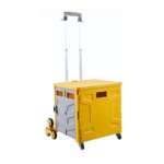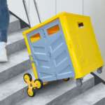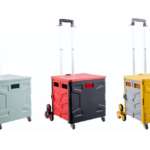 ガジェットブランド・miraiONから登場した「折りたたみ段差キャリーカート」(5980円/税込)は、段差や階段を登れる3輪がついた台車と、折り畳めるコンテナボックスが合体したキャリーカート。