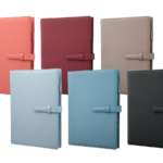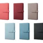 カラーバリエーションは、シュリンク調PUレザーが、ブラック、ブルー、ライトブルー、グレージュ、ボルドー、コーラルピンクの6種類、サフィアーノ調PUレザーがネイビー、ミントグリーンの2種類です(A5サイズのみネイビー1種類)。