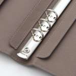 このほかにも、手帳を閉じた際にリングの跡がカバー表に響かないよう、リングの両サイドに当て革を施していたり、手帳の端を折り込んでステッチ仕上げにして強度を高めていたりなど、工夫が凝らされています。