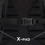 エルゴノミックデザインの採用により、備え付けのハンドルを持つ形でリュックを縦持ち&横持ちした際、またバッグを前抱え&片方掛けにした際でも、ズボンのポケットへ手を入れる感覚でフロントに配された4つのファスナー付きポケット“X-POCKET”に物を出し入れすることができます。センターファスナーポケットは、手帳や長財布などを安心して入れておけます。