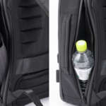 さらにバッグの左側面には、抗菌防臭素材のバイオライナーをインナーに配した硬い芯材入りの薄型ポケット“U-POCKET”、右側面には折り畳み傘やペットボトルを出し入れできる“I-POCKET”を搭載。背面部はエアベンチレーション構造+エアメッシュ素材のクッションパッドで蒸れと荷物の重さを軽減し、エコバッグが入ったセキュリティポケットが用意されています。