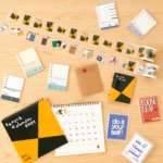 「100th × スケッチカレンダー」は、「図案スケッチブック」柄の表紙の画用紙カレンダー(1200円/税別)。スタンドが付いているため、卓上カレンダーとしても使えます。図案スケッチブックと同じ画用紙を使用しているので、風合いも描き心地もよいカレンダーです。後半の8ページは無地なので、やりたいことや目標、思い出などを描けます。本体サイズは178×174mm。