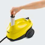 「SC 3 EasyFix」の内容物は、イージーフィックスフロアノズル、ハンドブラシ、ノズルヘッド、ブラシ黒黄色各1本、スポットノズル、フロアノズル用クロス、ハンドブラシ用カバー、パイプ、スケール除去カートリッジ、スポットノズル。