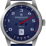 ダイヤルとカーフレザーのベルトにはクールなブルーを採用。分針やパワーリザーブインジケーターの針、バーインデックスの一部、ベルトのステッチなどに使われているレッドの差し色がデザインのアクセントとなっています。