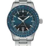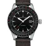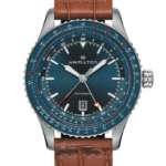 ふたつの異なる時刻を表示できるGMT機能と、80時間の標準持続時間を実現するH-14自動巻きムーブメントを搭載しており、世界を飛び回るアクティブな人にぴったりなモデルです。