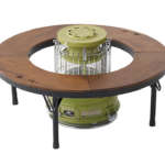 別売りの木製天板の円形テーブル「LOGOS×SENGOKU ALADDIN ストーブテーブル」と組み合わせれば、焚き火を囲むように円座に座れ、家族や仲間と温まりながら和気あいあいとおしゃべりできます。