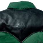 ふたつの歴史が巡り合った珠玉のダウンベストは、ロッキーマウンテンの顔とも言えるナイロンベストを元に、モビルスーツの機体色をイメージしたカラーリングにアレンジ。1枚革を使用した肩ヨークの背中部分に「ガンダムモデル」は連邦軍、「シャア専用ザクⅡモデル」はシャア・アズナブルの紋章、「ザクⅡモデル」はジオン軍のエンブレムマークが型押しされています。