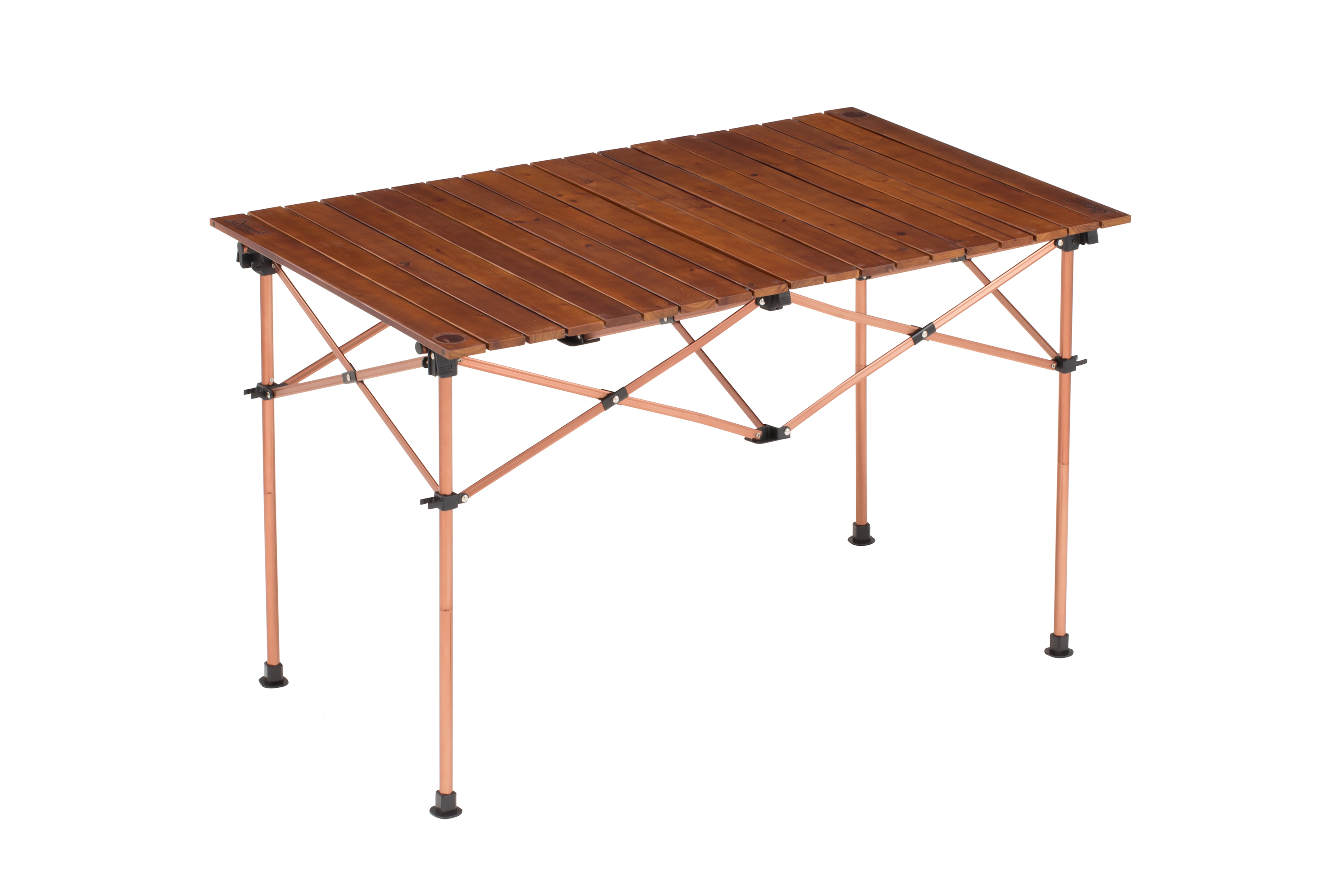 こちらも天然木のスギを使用した贅沢な折りたたみ式テーブル。使用時のサイズは112×70cmで高さは40cmと70cmの2段階に調節が可能。重量は約5.3kg。