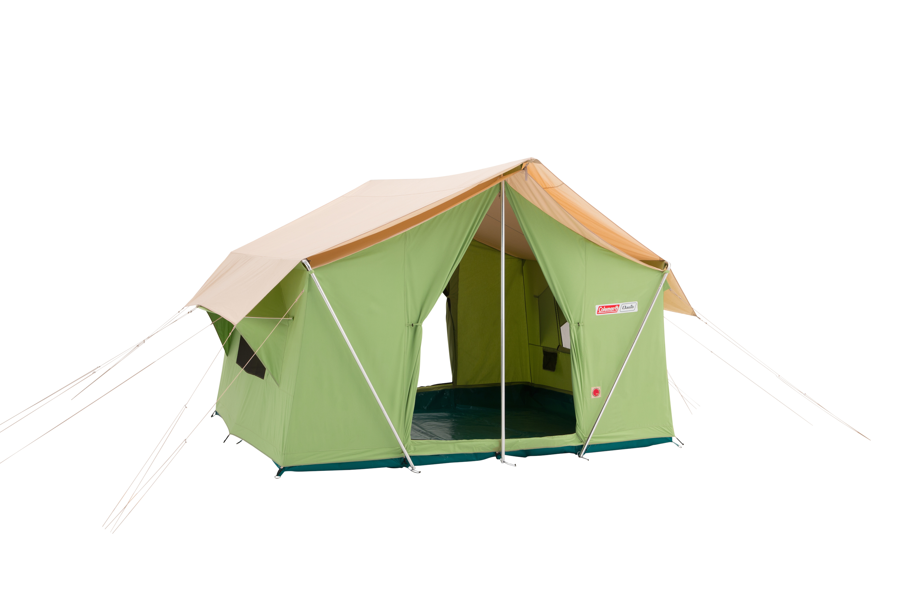 370x275x232(h) cm、重量約35kgの大型テント。当時「家」と表現されていたとおり、三角屋根の家のようなフォルムが昔懐かしい、ファミリーで楽しめる快適なテント。